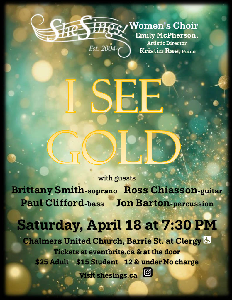 She Sings! Women Choir Spring Concert highlighting empowering, inspirational music with Artistic Director Emily McPherson and collaborative pianist Kristin Rae. Guest artists, soprano Brittany Smith, guitarist Ross Chiasson, bassist Paul Clifford and percussionist Jon Barton. One night, one show, don’t miss it!